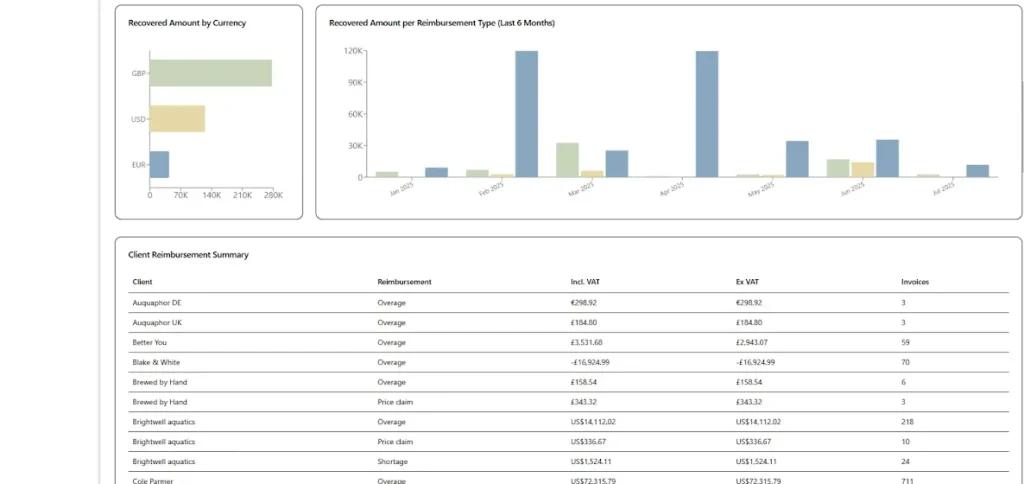 We provide all our clients with full visibility into the current state of their Vendor account, and actions to assist you managing your key costs & KPIs.